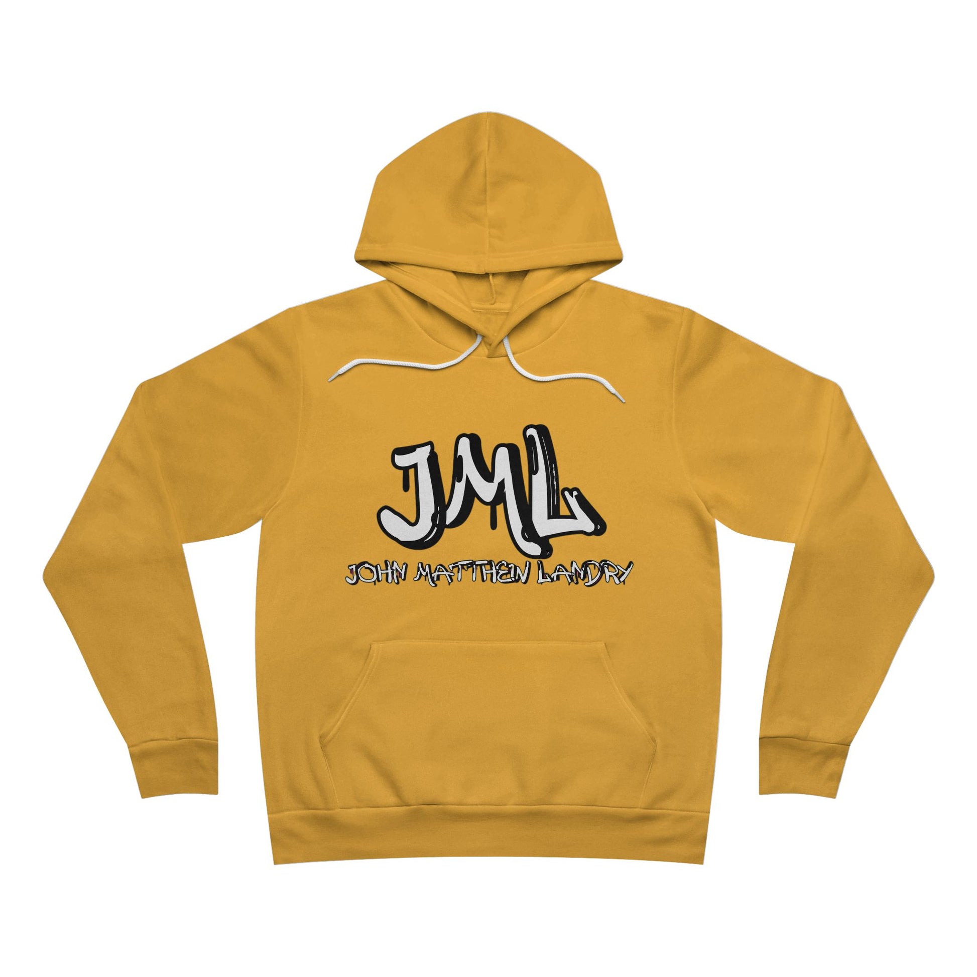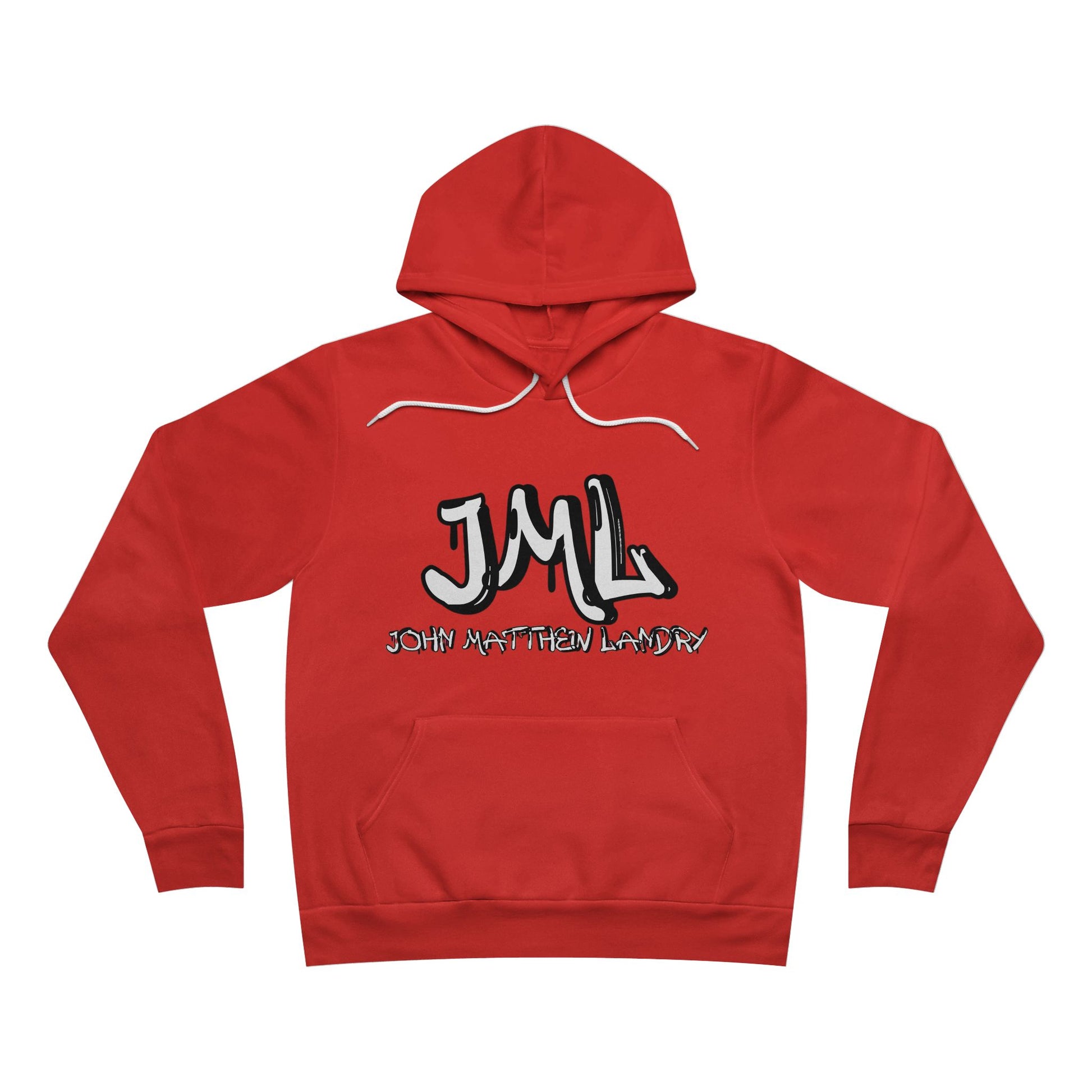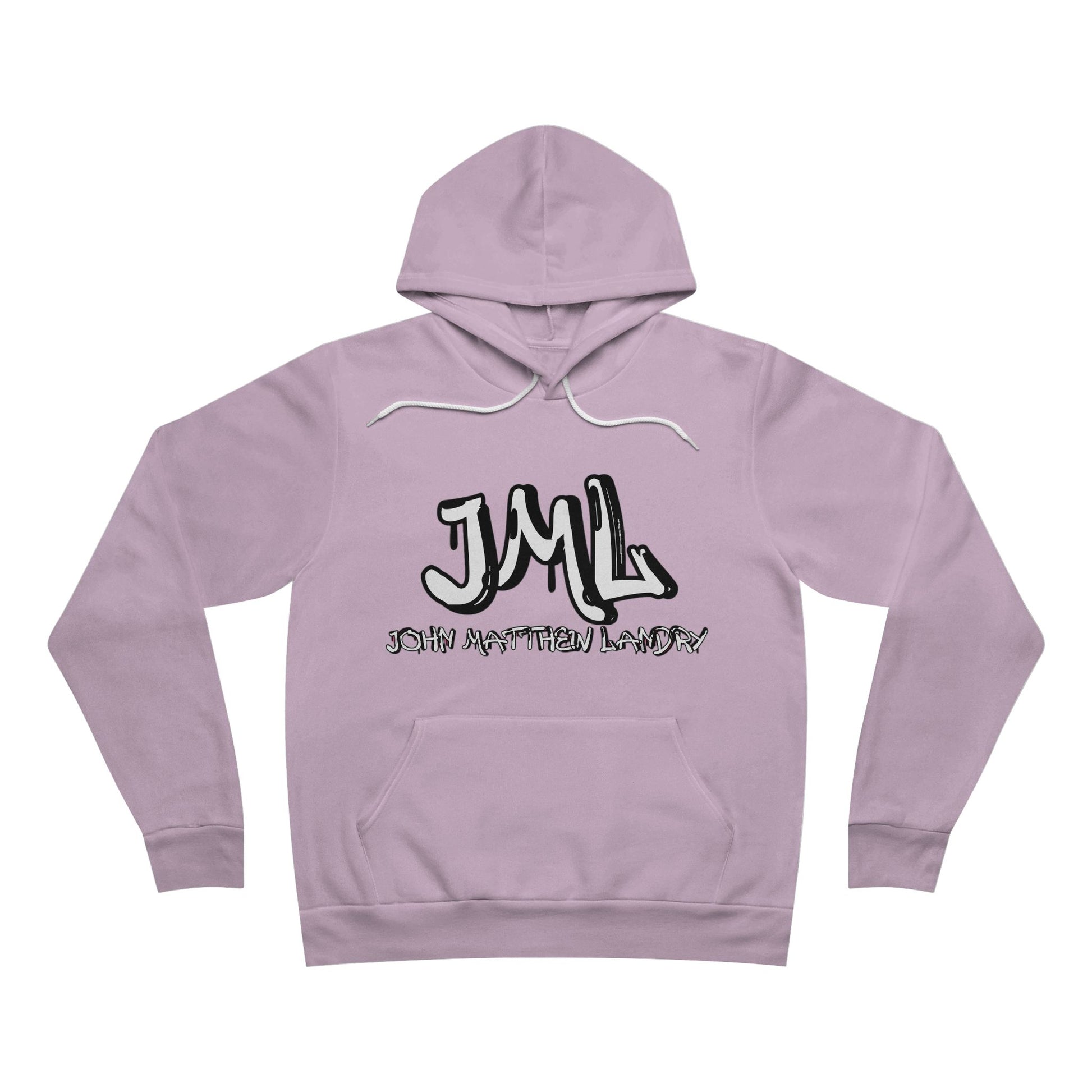 The unisex sponge fleece pullover hoodie is a blend of Airlume cotton and polyester. The percentages vary according to color. A pouch-style pocket spreads across the lower half of the garment’s front. The hood can be tightened with a white drawcord. Both cuffs and waistband have ribbing for extra grip.